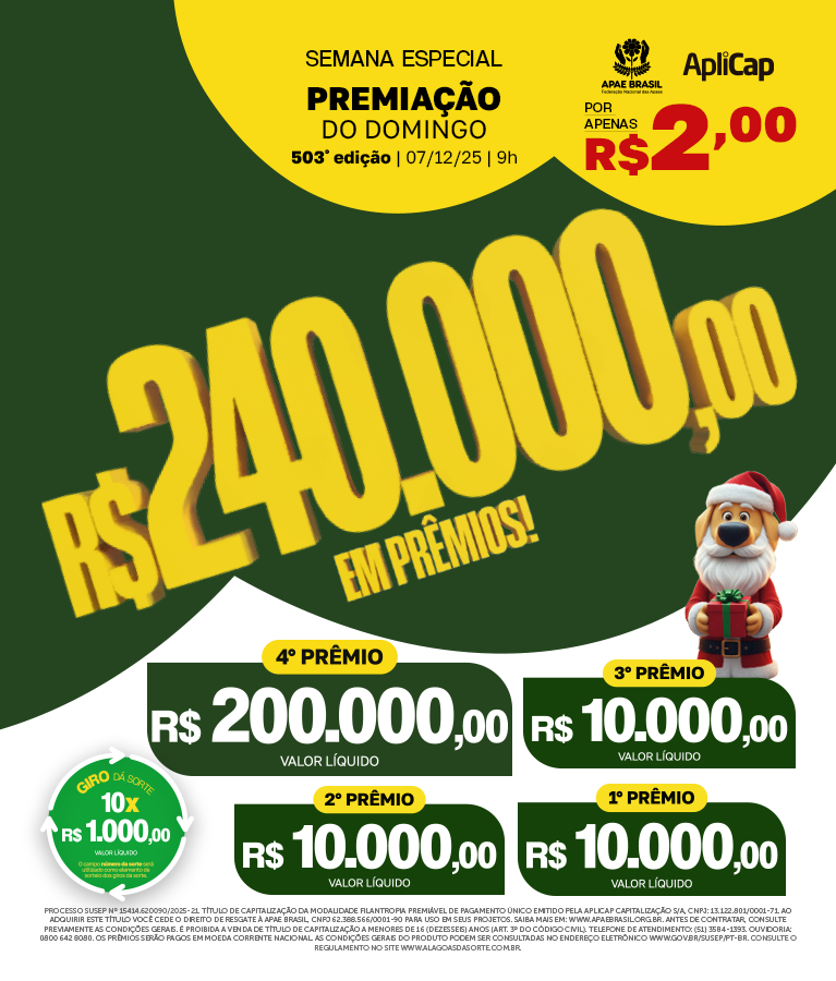 Ver PromoçõesA Rádio Mais Maceió tem o orgulho de contar com o apoio da empresa Alagoas dá Sorte, em uma parceria institucional sem fins lucrativos. Juntos, fortalecemos ações sociais e de comunicação a serviço da comunidade.